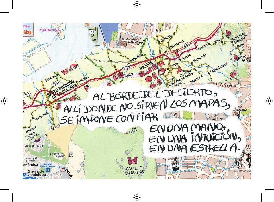 Las señales que hacemos en los mapas viene acompañado de un regalo: una serie de siete postales. Una invitación a seguir contando caminos, compartiendo pasos: una invitación a escribir.